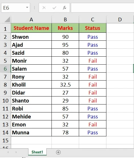 উপরে ভিত্তি করে খুব সহজেই Pass/Fail বার করা যায়। এই কাজটি Microsoft